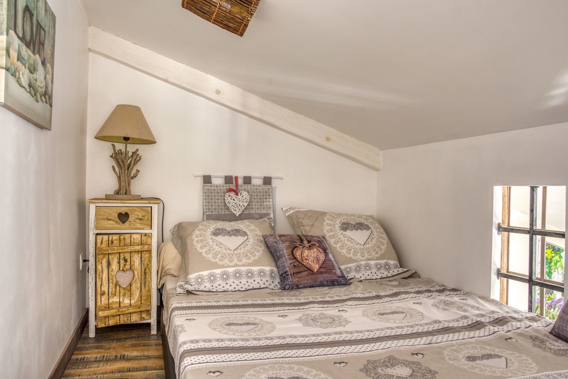 Bastidon pour 4 personnes maximum , composé de 2 chambres , l''une avec un grand lit en baldaquin (160cm) et l'autre en mezzanine avec lit en 140cm . Accès à la piscine de 9h à 20h